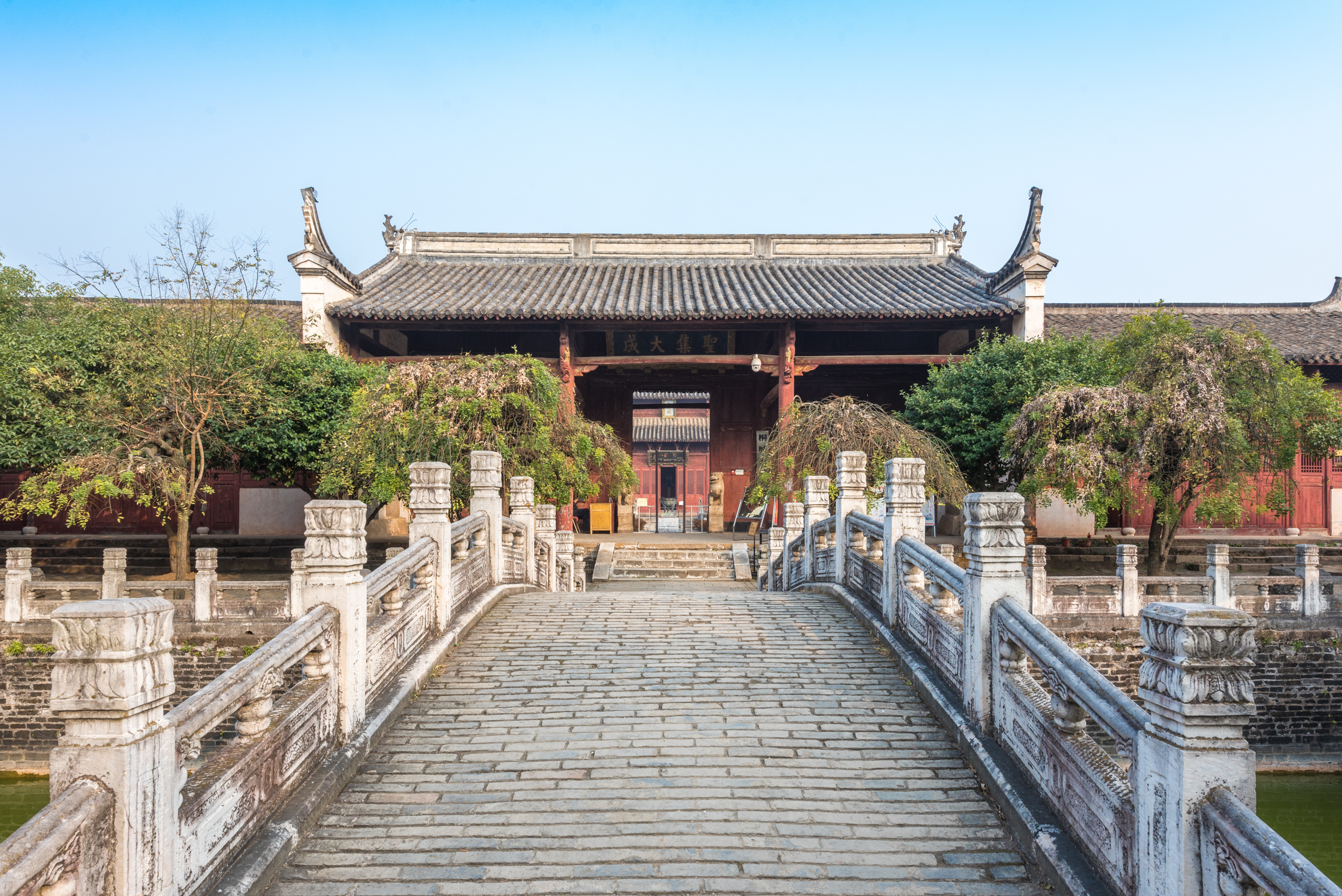 作为安徽省现存最完整的文庙之一,这里是 “桐城派”文化的发源地。文庙建筑群以大成殿为中心,布局严谨,红墙黄瓦的建筑庄严肃穆,泮池、状元桥、大成殿依次排列,院内古柏参天,环境清幽,古色古香的建筑里藏着千年文脉。